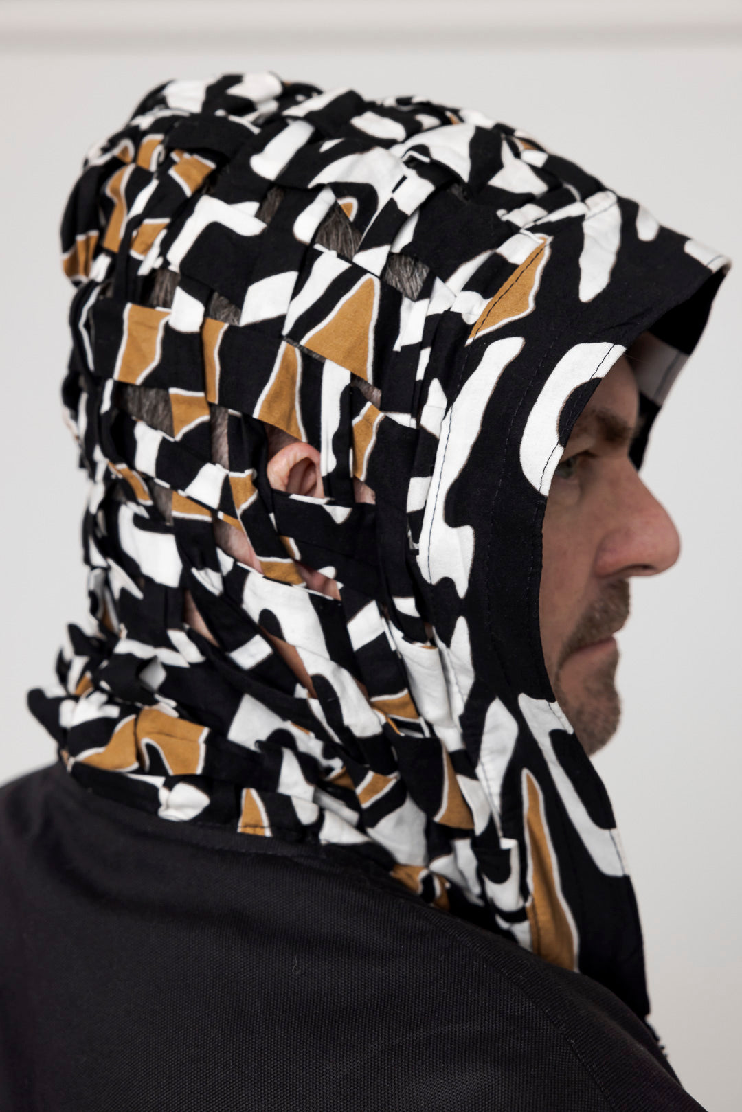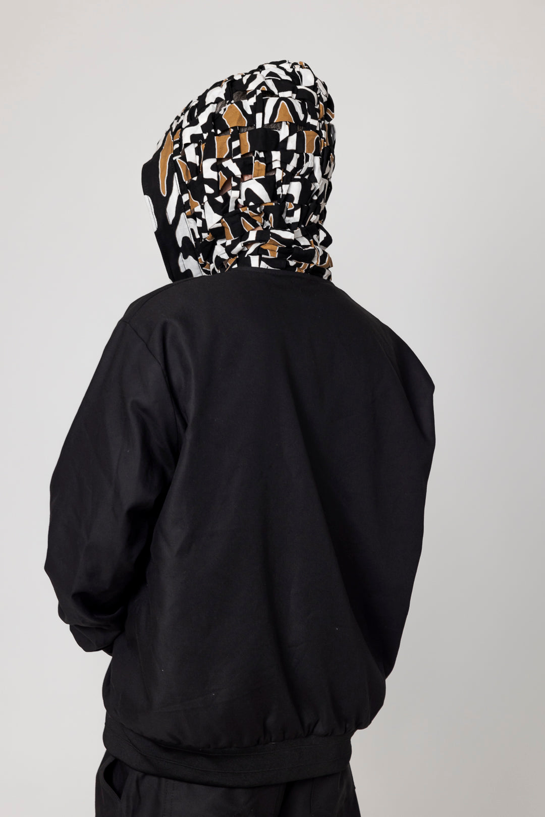 Sporty "Barzone" jeans suit with hood and patchwork detail. Can also be worn separately.