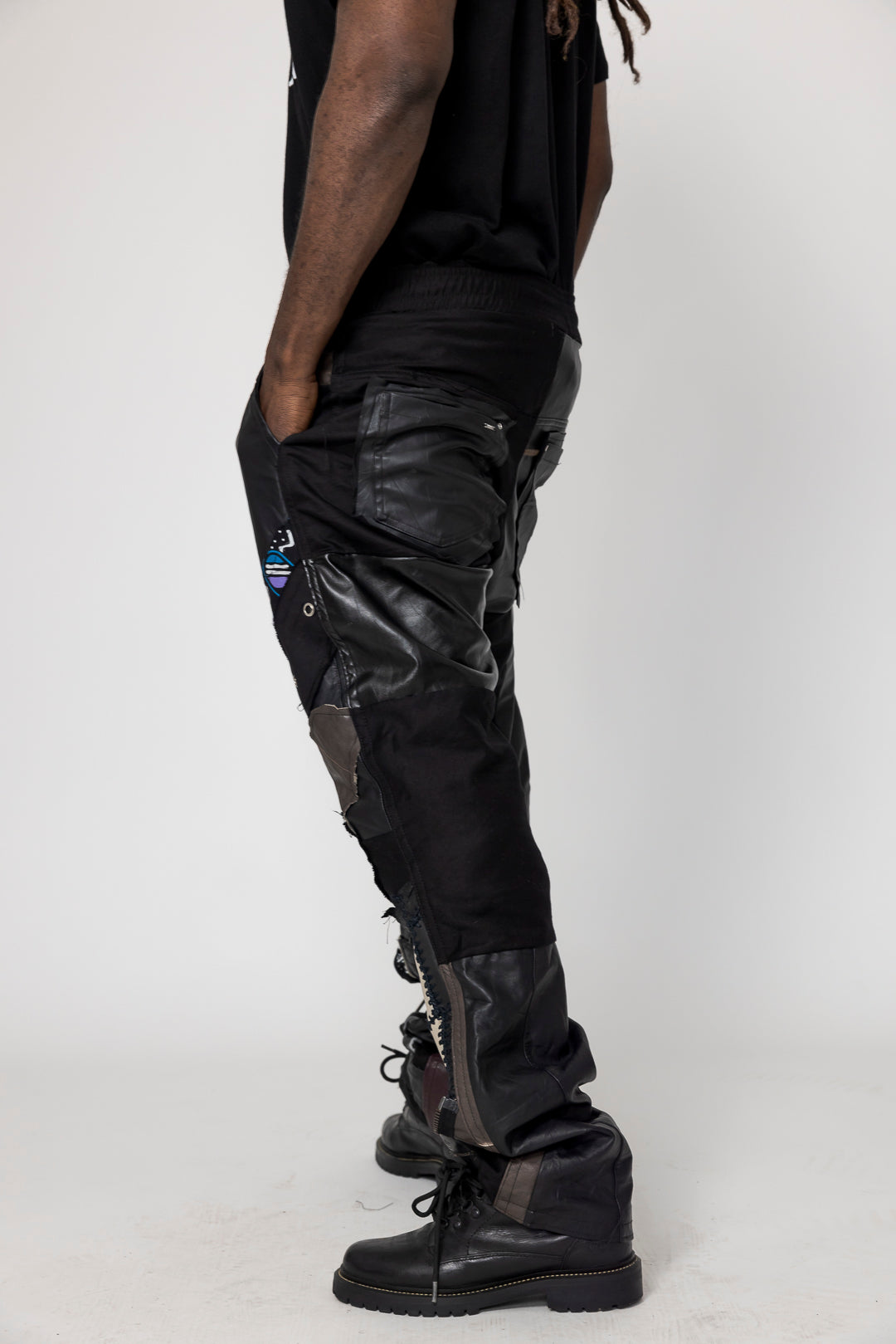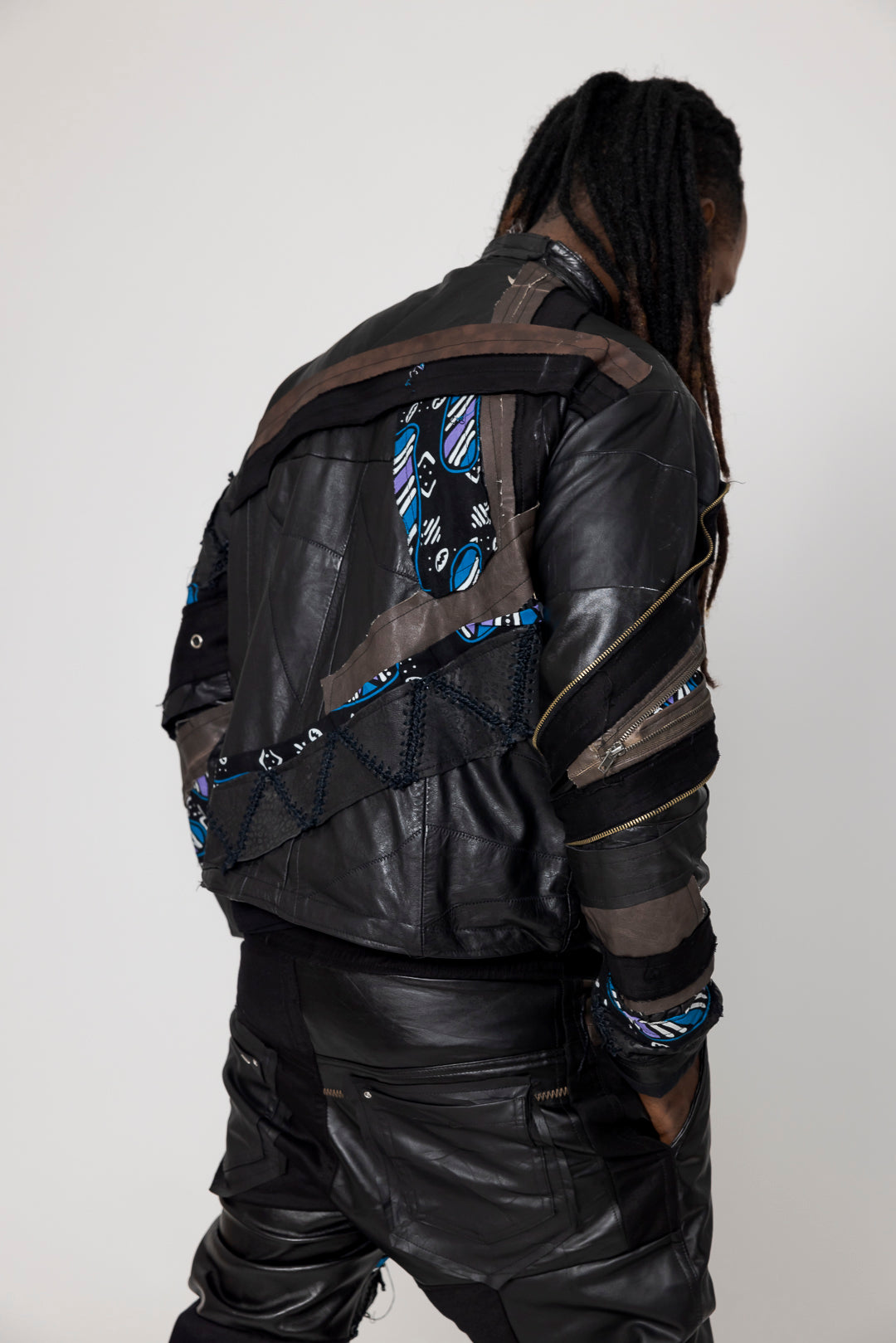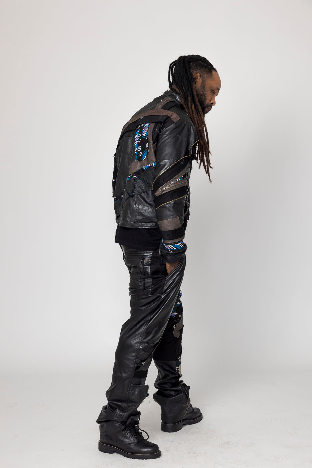 Patchwork-Lederanzug "Zogani". Hose mit farbenfrohen Baumwollstoffen im Trend.