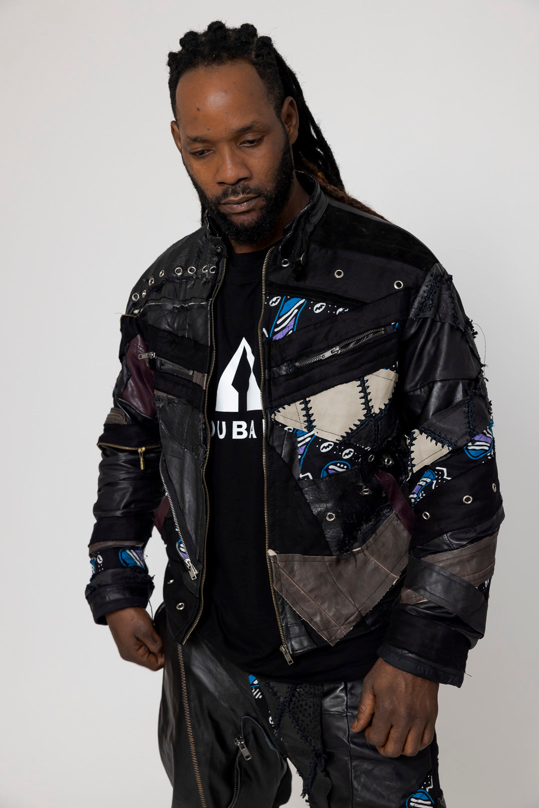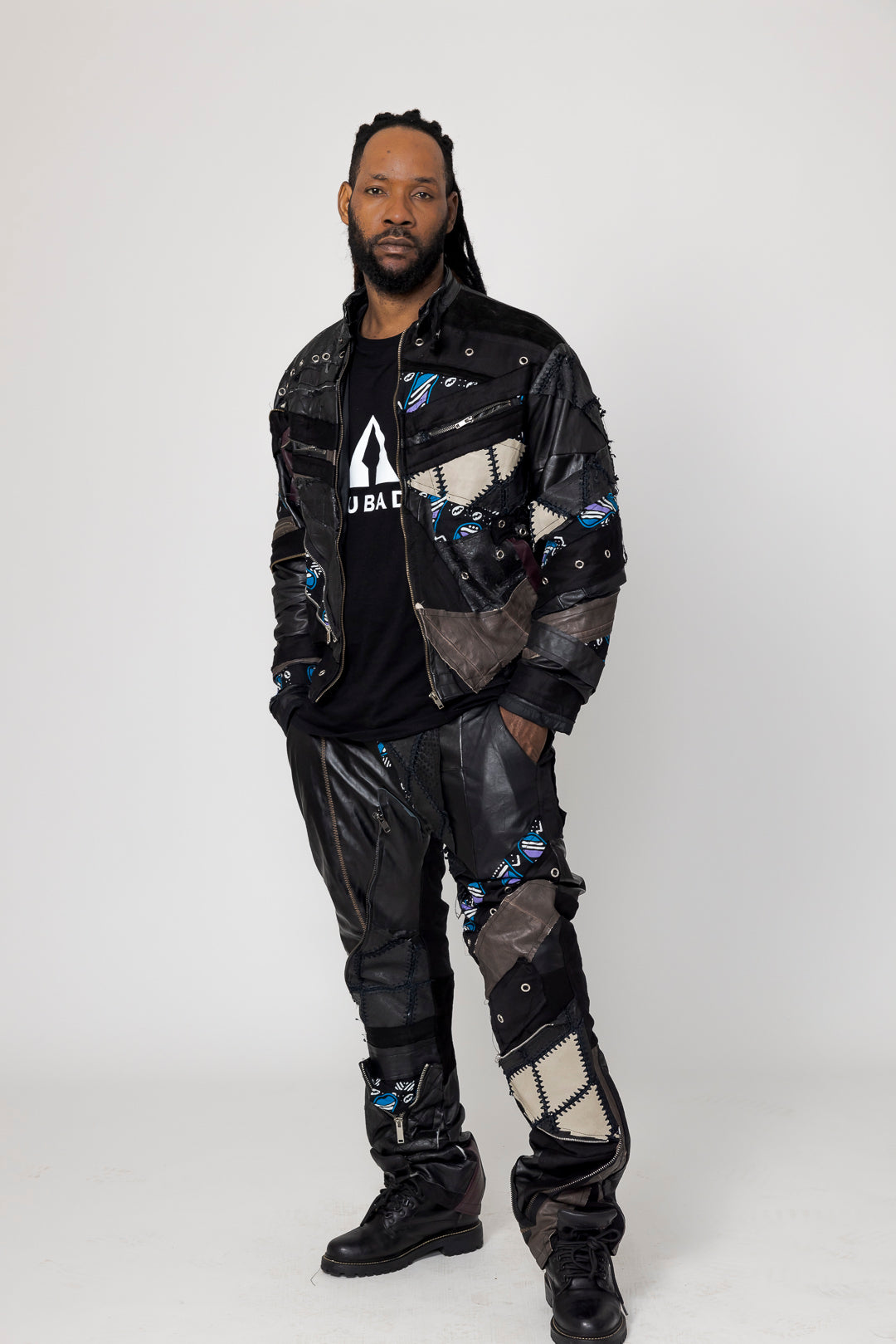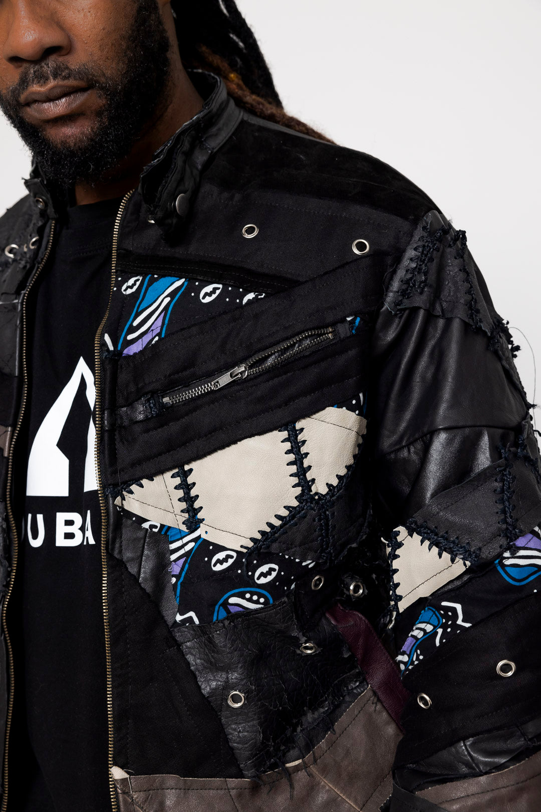Patchwork-Lederanzug "Zogani". Hose mit farbenfrohen Baumwollstoffen im Trend.
